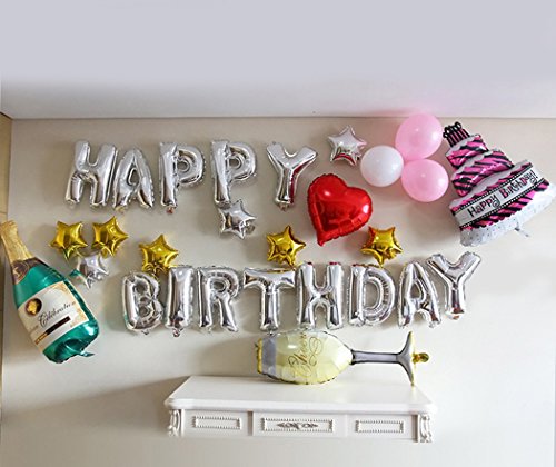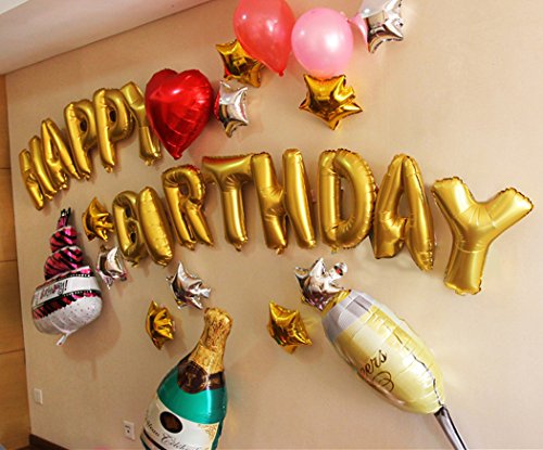 -. Feature : Made of high quality aluminum foil balloons and auto-seal / Measurement about 16 inches of birthday foil balloon, includes 13 independent alphabet letters, can be freely taped to the wall / Perfect for decorating the babies, kids, adults birthday party with this lovely "HAPPY BIRTHDAY" mylar letter balloons / Please inflate the gas slowly until 90% filled and keep away from fire, because of the thermal expansion(the inflate pump not included) / Note:This Happy birthday banner balloons were not attached to each other and CAN NOT FLOAT both with helium and air. You can tape it to the wall or hang with string(string not included)