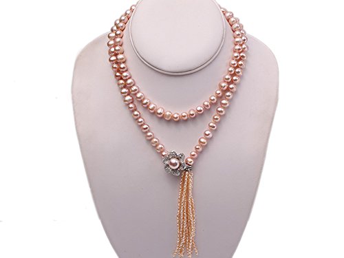 Description *This unique style necklace is mainly strung with 9-10mm transverse-drilled pearl beads of natural color.They are strung together with a solid nylon thread.At the end of the nekclace,a beautiful flower-shaped clasp is used as a decoration.