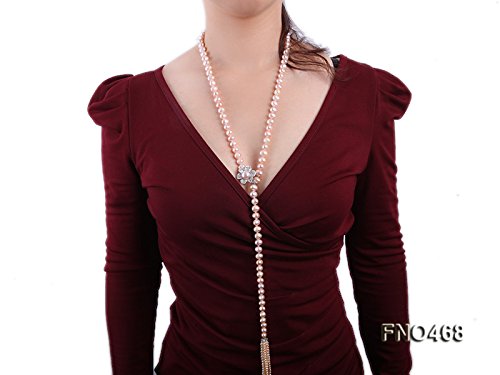 This unique style necklace is mainly strung with 9-10mm transverse-drilled pearl beads of natural color.They are strung together with a solid nylon thread.At the end of the nekclace,a beautiful flower-shaped clasp is used as a decoration