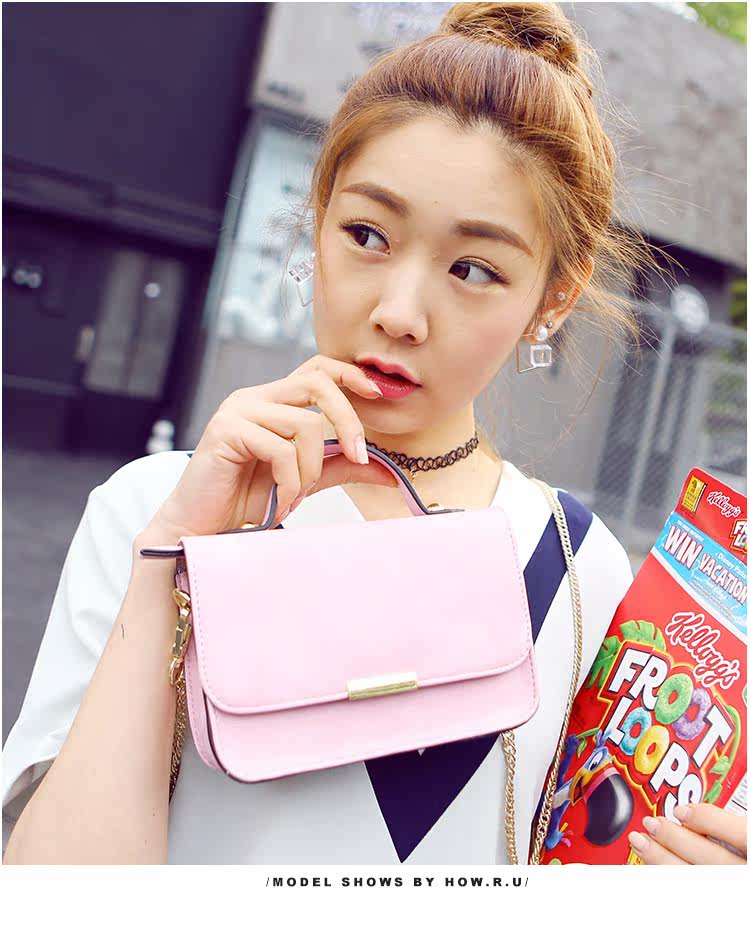 夏季新款包盖式纯色链条女包日韩版手提斜挎包休闲小方包