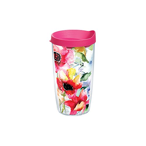 Tervis 1208543 Watercolor Blooms Wrap Tumbler with Fuchsia Lid, 16 oz, Clear