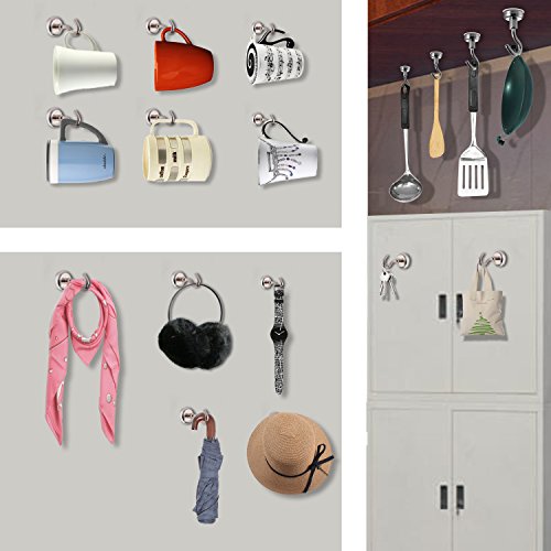 Large Suction - Each magnetic hook could hold 12 pounds. The capacity of 12 pound is based on vertical application, it will reduce by 2/3 if used horizontally.