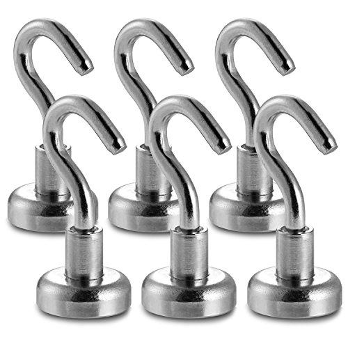 Powerful Magnetic Hooks, PEMOTech 6 Pack of 12LB Neodymium Heavy Duty Super Strong Magnetic Hooks, Hanging Hooks for Refrigerator and Other Magnetic Surfaces to Hang Towel,Key,Calendar and Hat