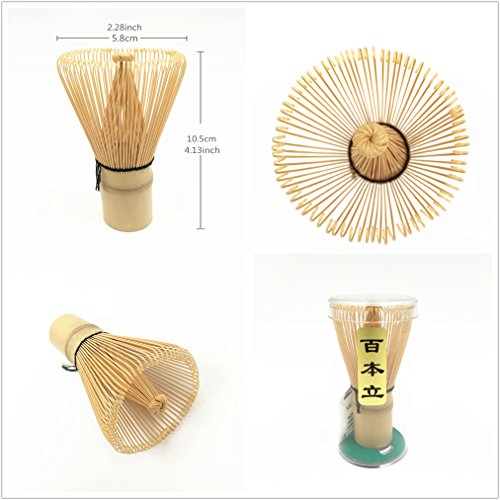 ?Bamboo Chasen Whisk 100 prongs Diameter: Approx. 5.8cm/ 2.28inch Height: Approx. 10.5cm/ 4.13inch To make great Matcha, you must have this bamboo whisk,is used to make matcha powder frothy and of the right consitancy for drinking. ?Bamboo Chashaku Tea scoop Length: Approx. 18cm/ 7.08inch The bamboo tea scoop (chashaku) is perfect for measuring out matcha powder and scooping tea out of a round tin. Handmade and lightweight with a curved end - acts a spoon specially made for matcha green tea powder.
