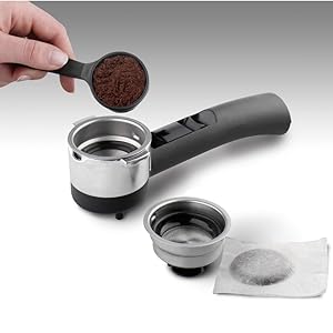 The three-in-one filter holder, included with the unit, has a holder for one espresso shot, a holder for two shots and one for an easy-serve espresso pod - whatever your preference.