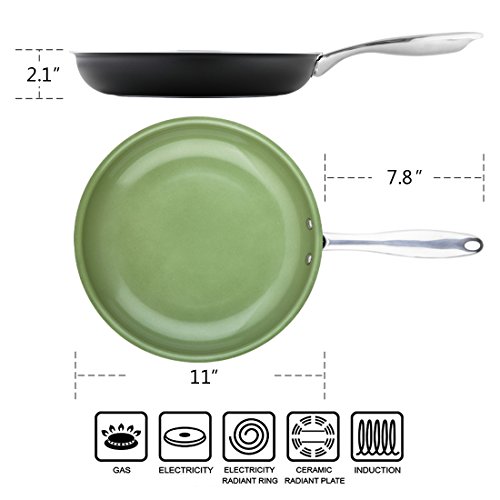 Features and Benefits: Perfect for whipping up all kind of recipes, this fry pan from Michelangelo is a must-have to release your Inner Chef. Everything you need to prepare delicious stir-fry meals and more, is in this Stainless Steel Non-Stick frying pan. Made of Premium Stainless Steel, the 11 Inch Stainless Steel Fry Pan promotes healthy cooking requiring less oil by using Swiss ILAG Non-stick Technology.