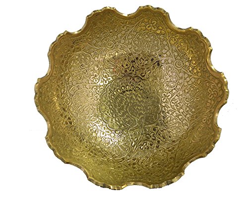 Zap Impex Pure Golden Plated Brass Decorative Fruit Bowl carving Work - Size- 9" Beautiful Peacock design Kitchenware Gift