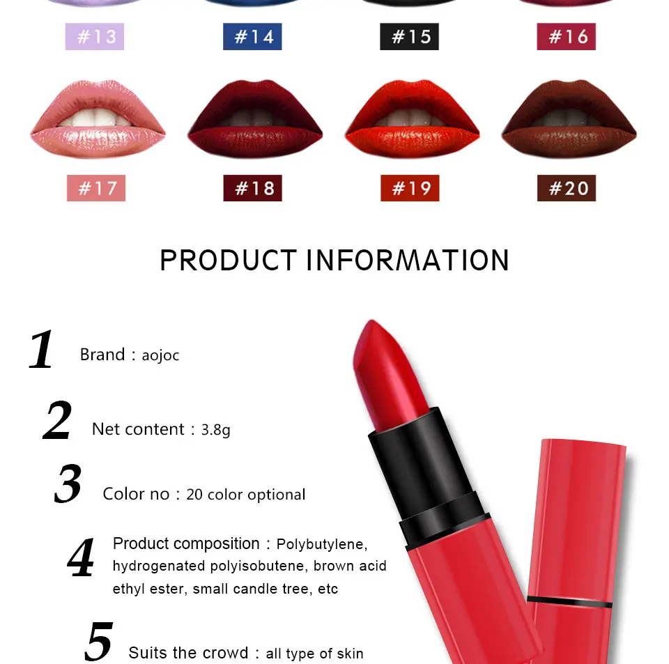 Feature1:make up matte lipstick,lapiz de labios larga duracion