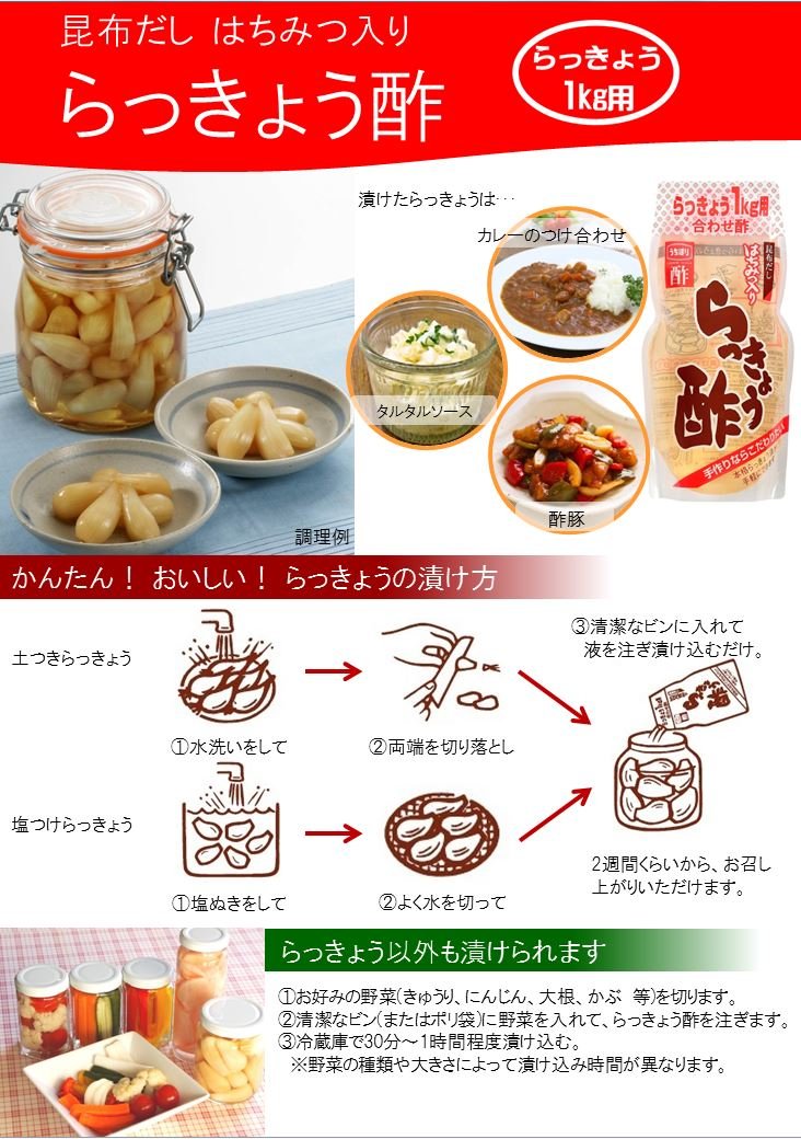 Based on rice vinegar, it is the best of Rishiri kombu and it is sweet vinegar for pickled pickle with honey combined.