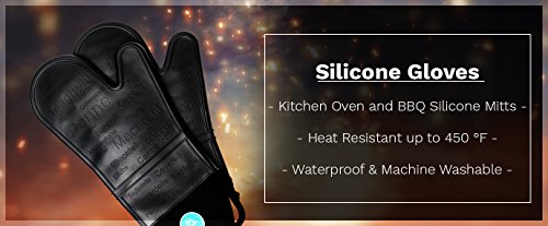 Heat-Resistant Oven Mitts – Protect your hands and wrist from burns whether you are baking cookies or cooking delicious turkey using our BPA-free BBQ Silicone Mitts. They provide heat resistance up to 450°F.