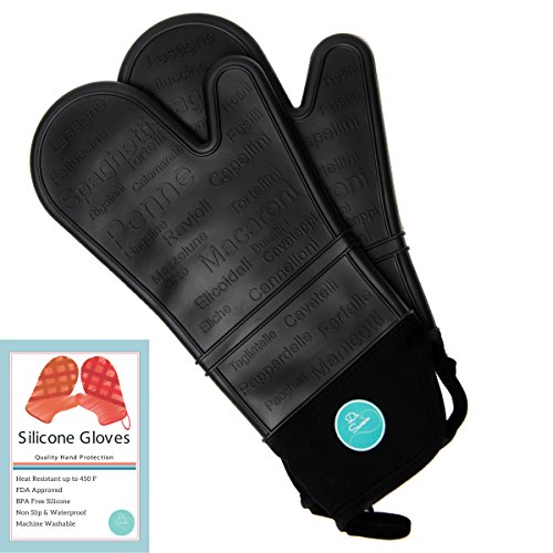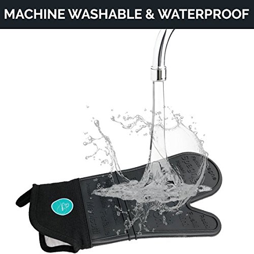 Silicone Oven Mitts for women and men - Heat Resistant Quilted Lining Kitchen Gloves - 1 Pair (2 x Black Mitts)