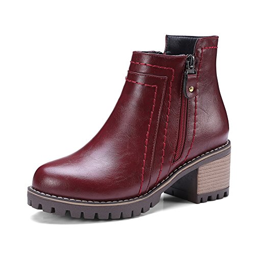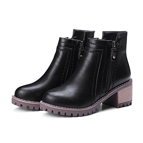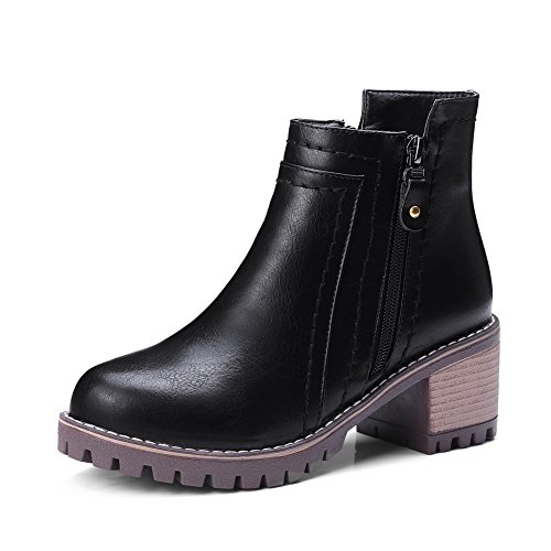 (BalaMasa)/Women's/Boots/DIRECT FROM USA/BalaMasa Womens Mid-Heel Zipper Solid Penny-Loafer Round-Toe Urethane Boots ABL09669