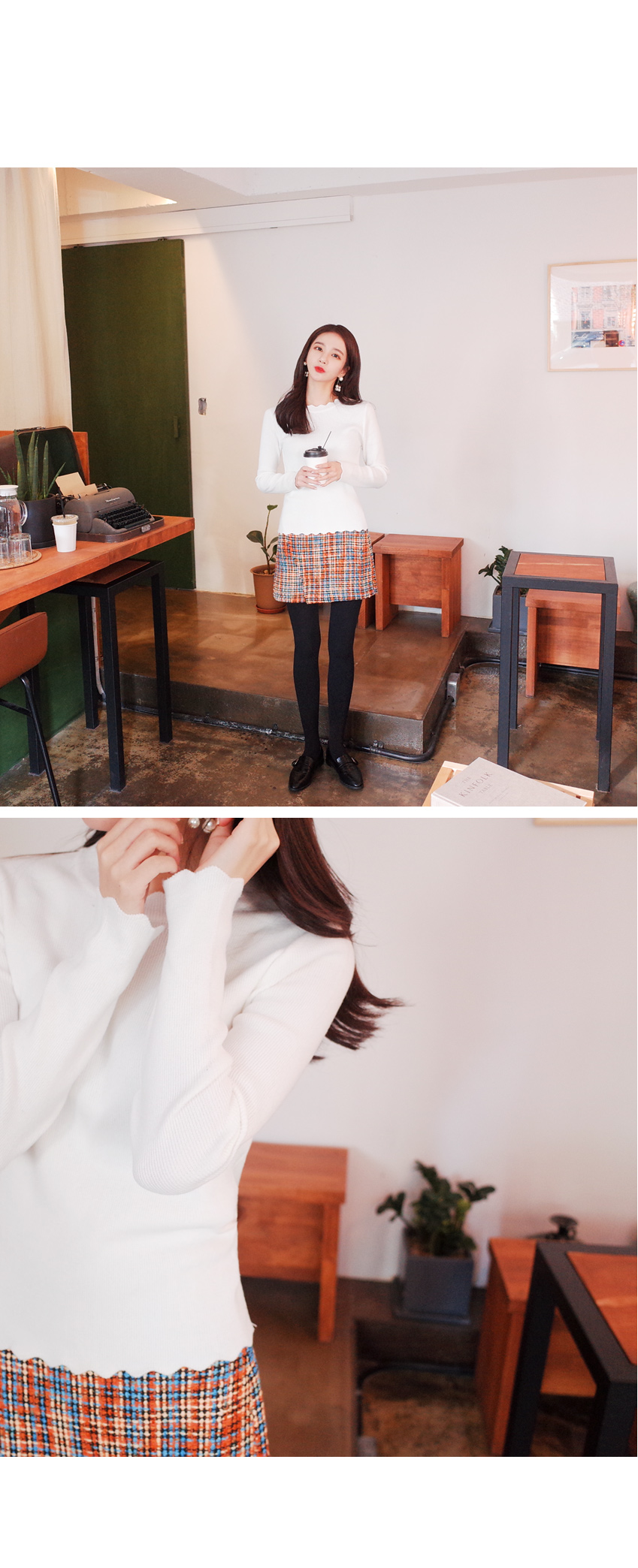 넥라인 밑단 소매부분이 물결라인으로 마감처리 되어있어