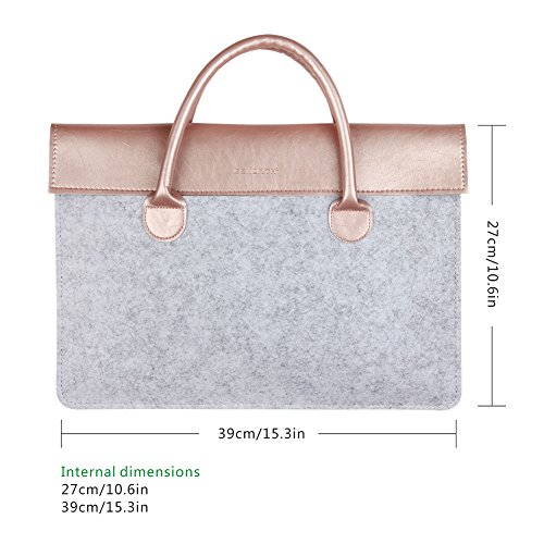 External Dimensions for handbag:15.3 *10.6 inch(L x W);Especially suitable for Macbook Pro Retina 15.4''(14.3 * 9.8 * 0.9 inch)/Macbook Pro 15.4'' with Touch Bar,please refer to the size to select for other laptop model.