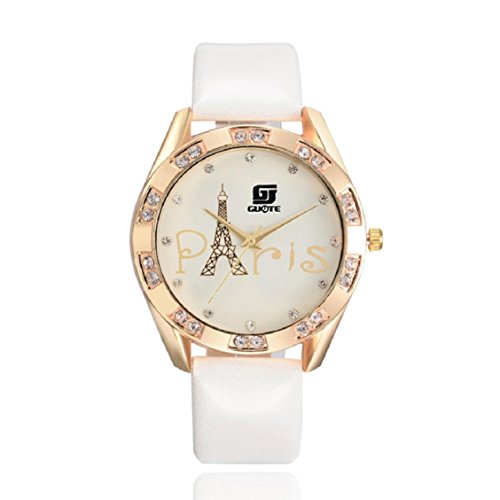 -. Title : Damen Uhr, OverDose Eisenturm -Lederband Uhren Sport-Analog-Quarz-Armbanduhr-Datum (Weiß)