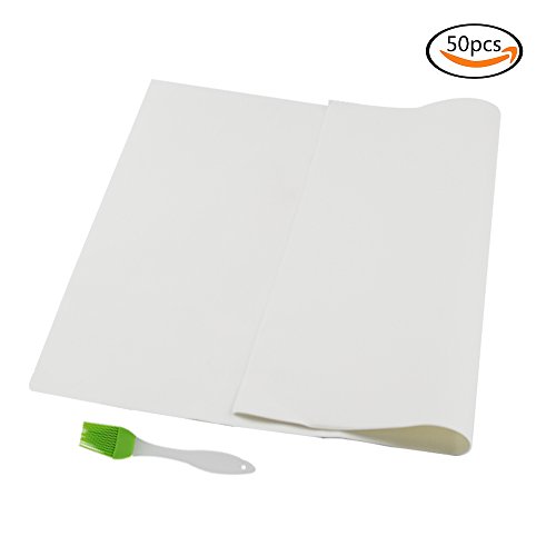 SHAN RUI Non-stick Parchment Paper for Cooking and Baking, 30x40cm, 50 Sheets, with 1 Silicone Brush