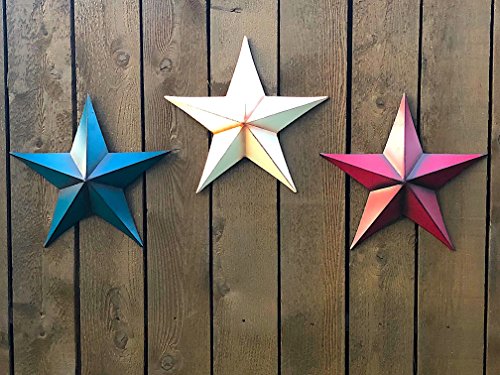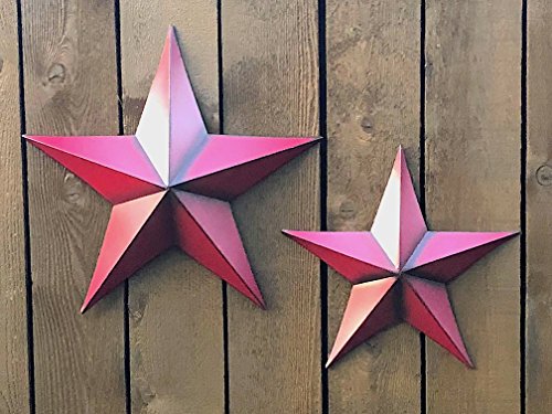 Wall Décor 3D Metal Star Rustic House Barn Art Decoration 14” (Red)