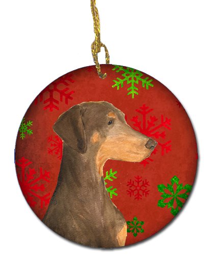Caroline's Treasures SS4686-CO1 Doberman Red Snowflakes Holiday Christmas Ceramic Ornament, Multicolor