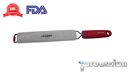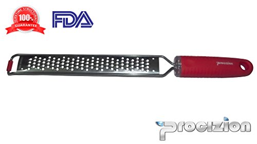 - HIGH QUALITY - Custom crafted from high-quality FDA grade 18/8 stainless steel with grating edges that stay razor sharp. Ergonomic red non-slip handle. Blade dimensions: 9" x 1 1/2" Overall dimensions: 15 1/2" x 1 3/4"