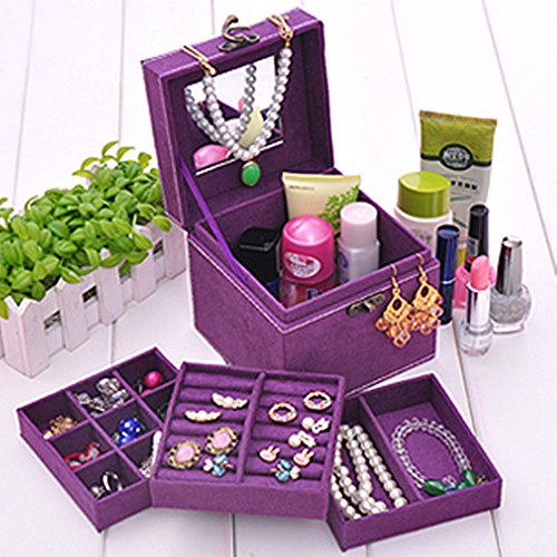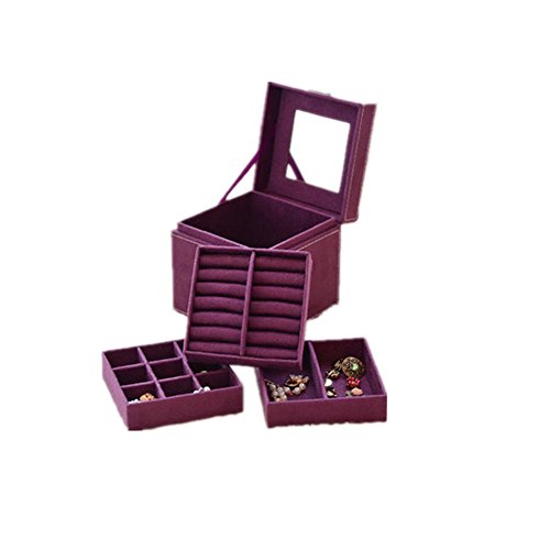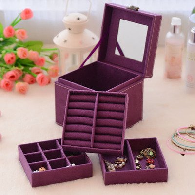 Jennifer Ling three-layer lint jewelry box organizer display storage case with mirror
