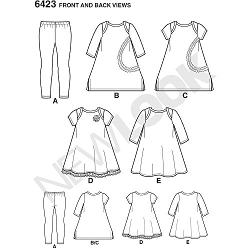 NEW LOOK Patterns Toddlers' Knit Dresses and Leggings Size: A (1/2-1-2-3-4), 6423