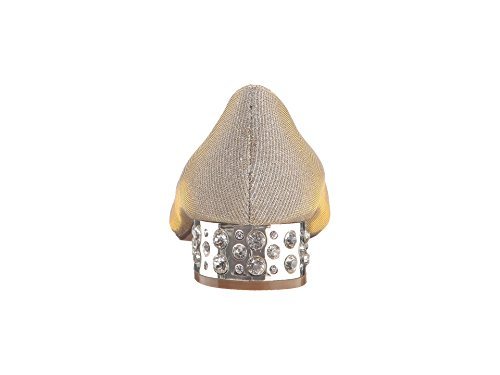 Product DescriptionMan-made upper. Easy slip-in wear. Classic round toe. Man-made lining and footbed. Metallic and rhinestone embellished block heel. Man-made sole. Imported.0