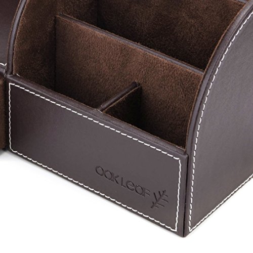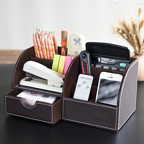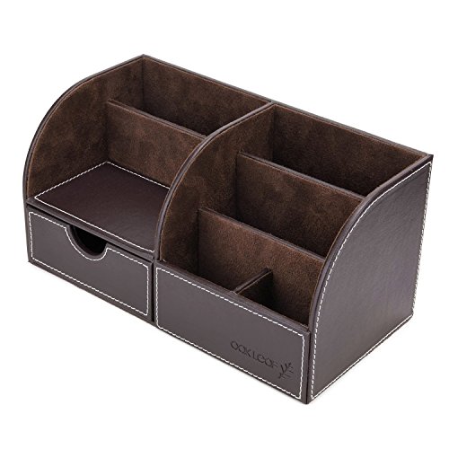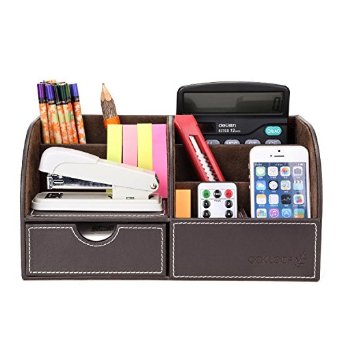Oak Leaf Home Office Supplies Leather Desk Organizer 6 Compartment Storage Box with Drawer,Multi-function