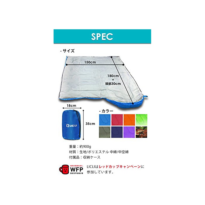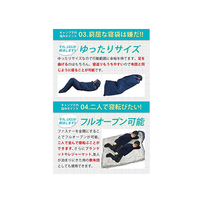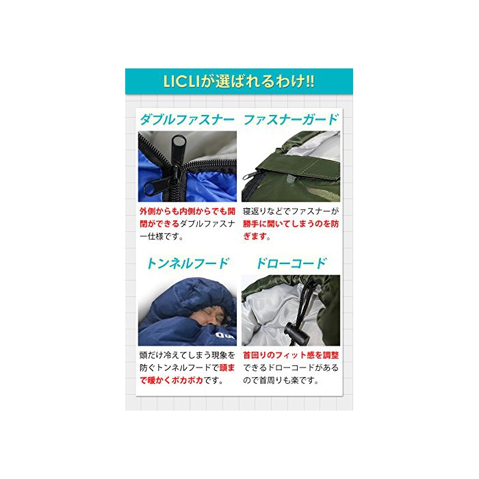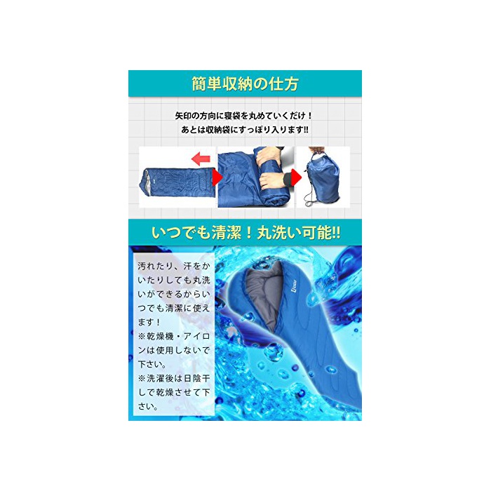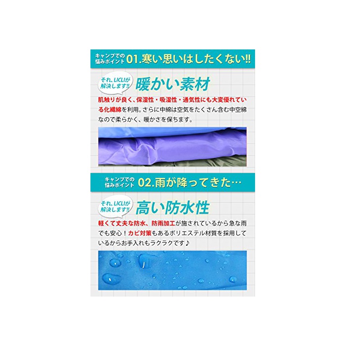 원본상품명: LICLI ?袋 「丸洗いできる 封筒型 シュラフ 」「 コンパクト 簡??納 」「 オ?ルシ?ズン ?量 防水 カビ?策 素材」「 キャンプ アウトドア 防災 用」