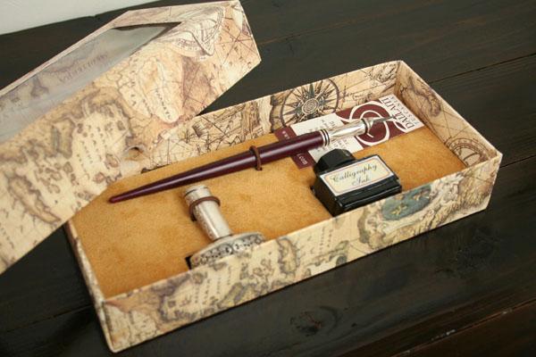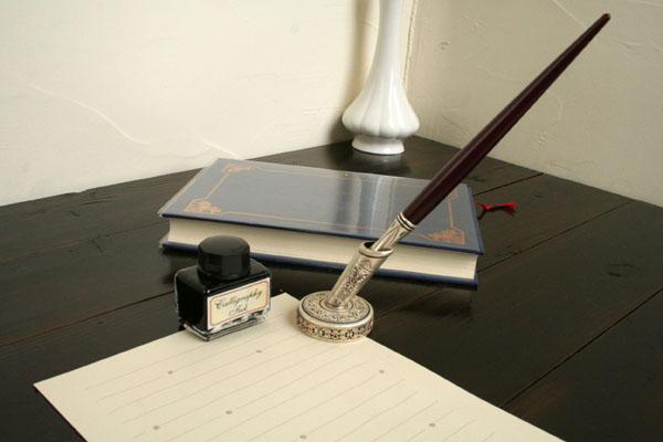 最もオーソドックスな木製つけペンに、ペン置き、インクをセットしました。