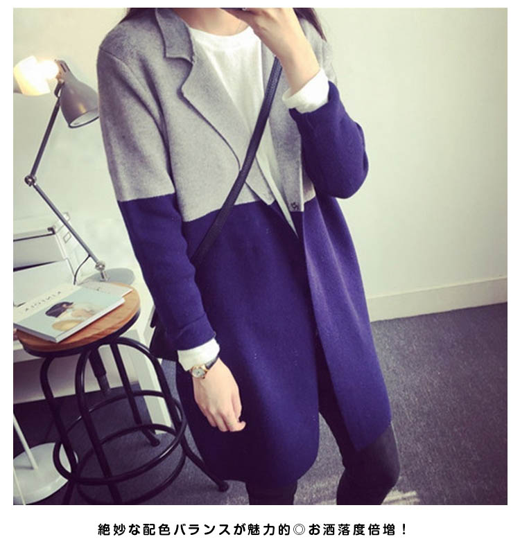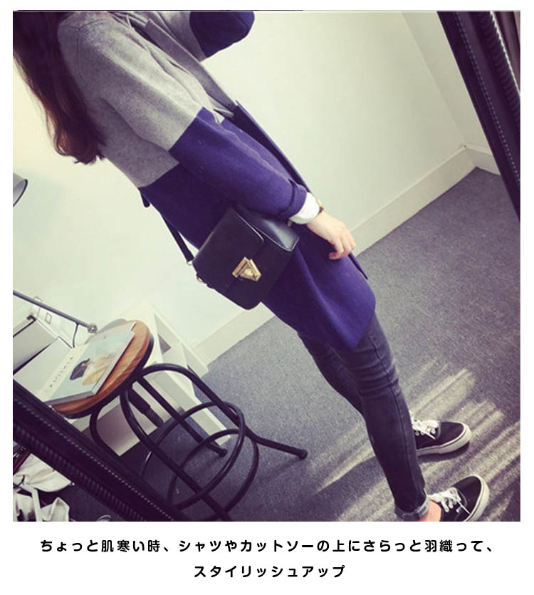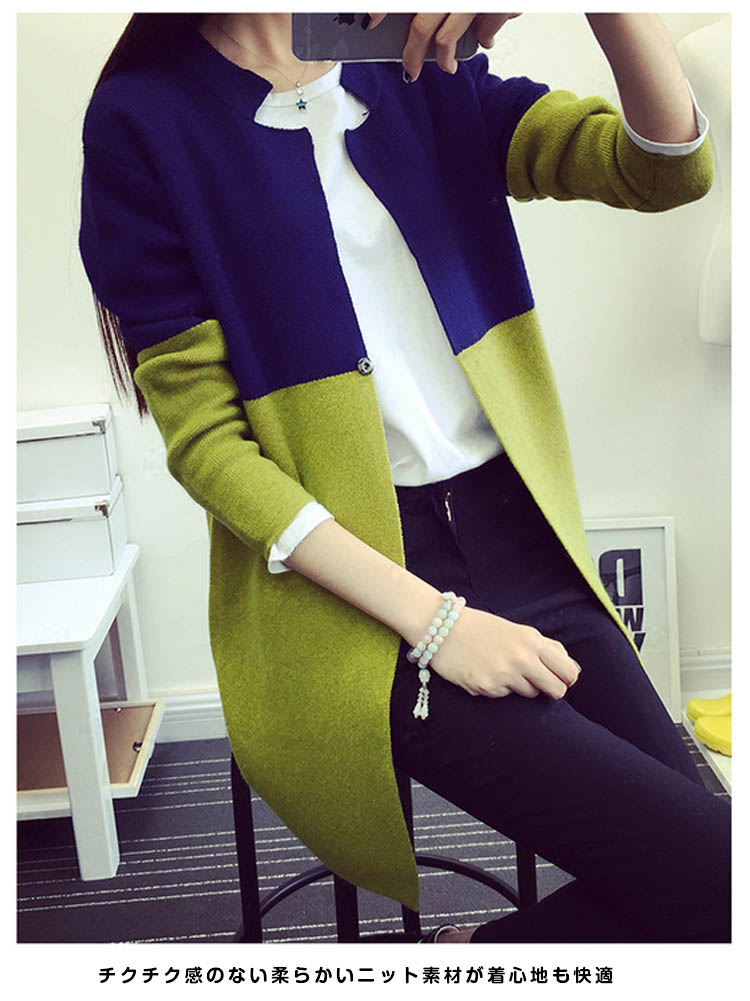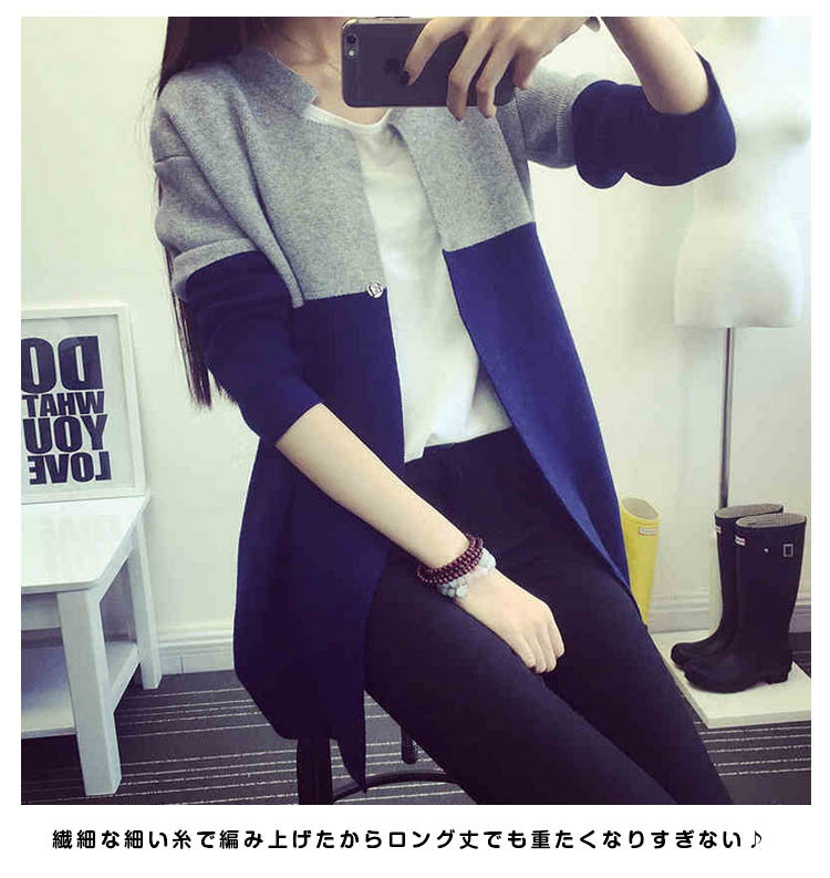 | シンプルながら大注目のバイカラーカーディガン大胆な色切り替えが存在感抜群!チクチク感のない柔らかいニット素材が着心地も快適繊細な細い糸で編み上げたからロング丈でも重たくなりすぎない♪絶妙な配色バランスが魅力的◎お洒落度倍増!ちょっと肌寒い時、シャツやカットソーの上にさらっと羽織って、スタイリッシュアップ | |