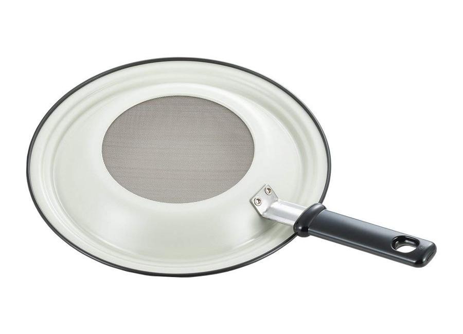 天ぷらやフライの時に油ハネをキャッチできます。油ハネを防いで、水分だけ飛ばす時に最適です。また、内面はフッ素樹脂加工を施しているのでお手入れも簡単です。 |