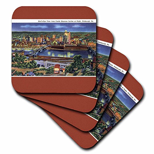 3dRose cst_170561_1 View from Castle Shannon Incline at Night Pittsburgh Pennsylvania-Soft Coasters, Set of 4