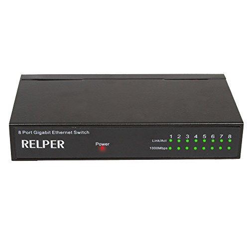 RELPER 8-Port Gigabit Ethernet desktop switch features include port based auto-negotiation, store-and-forward switching with non-blocking wire speed performance, Full-Duplex Capacity