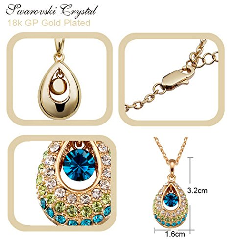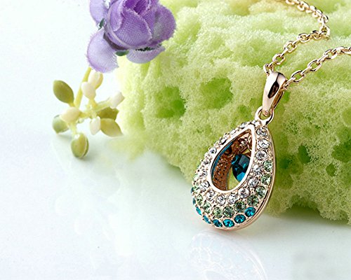 - Feature : The necklace theme is angel's tear. The hollow pendant was covered with color changing crystals sparkling beautifully with a round blue topaz in the center with a shining gloss. The necklace is 18k rose gold plated. / It's a perfect fashion accessory to complement your wardrobe or as an appropriate gift used in wedding and engagement party or other occasions. / The chain is about 15.7'' long. The pendant size is about 1.2''*0.6''. / Shipped out in an exquisite jewelry gift box. Delivery time 7-15 days. / One year warranty to ensure you a perfect shopping experience.