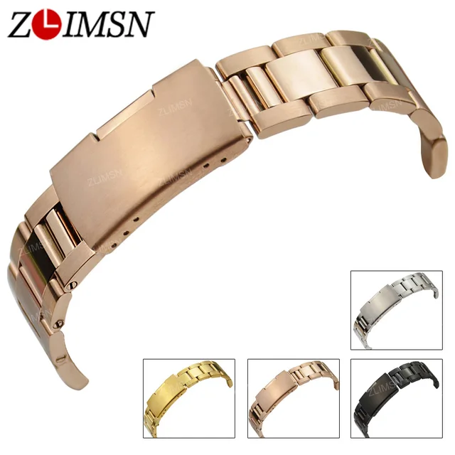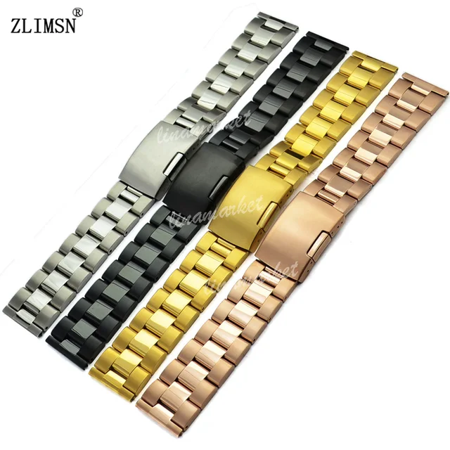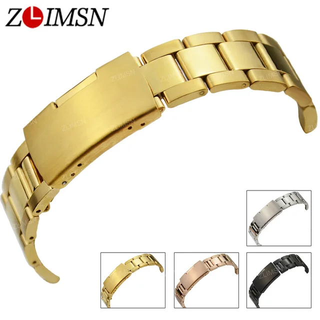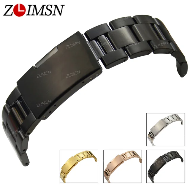 ZLIMSN 배포 걸쇠 줄 316L 순수 솔리드 스테인레스 스틸 팔찌 블랙 골드 은색 골드 시계 스트랩 18-30 미리메터