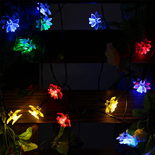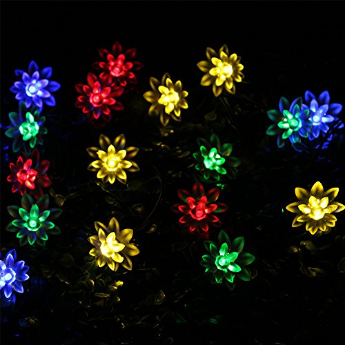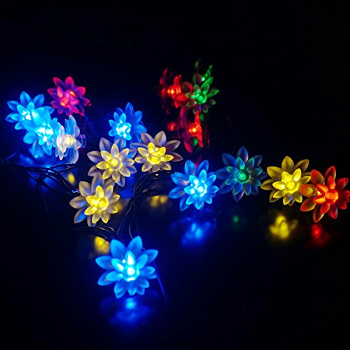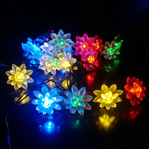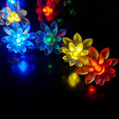 LED SopoTek Multi-color Solar Powered String Light Outdoor 20LED Lotus Flower Fairy Lights for Homes Globe Waterproof Garden Light, Christmas, Gardens, Wedding, Party Decoration Waterproof(20LED Multi-colored)