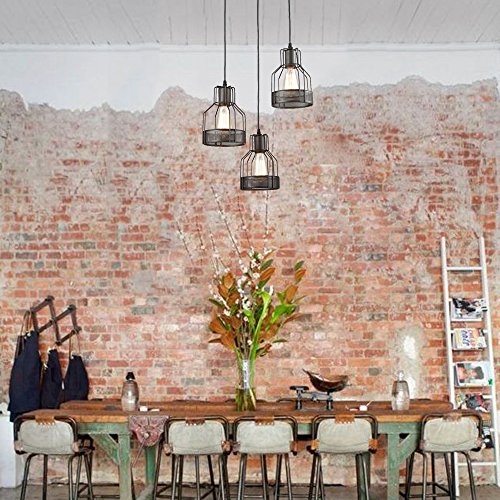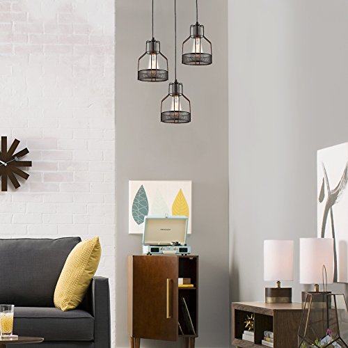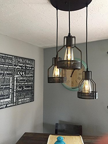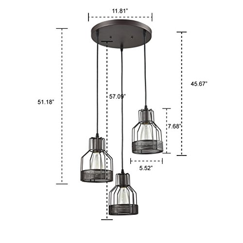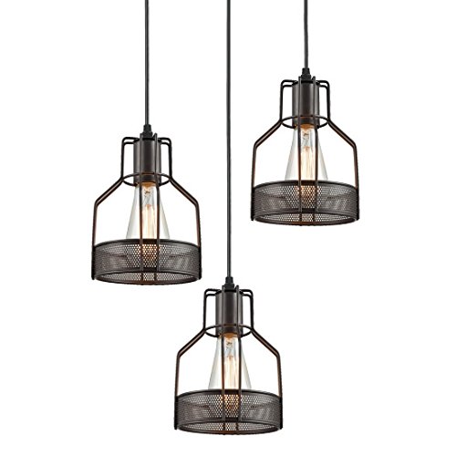 Truelite Industrial 3-Light Dining Room Pendant Rustic Oil-rubbed Bronze Wire Cage Hanging Light Fixture