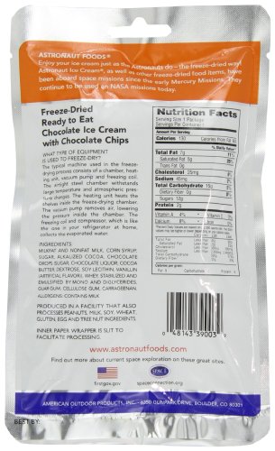 Chocolate Ice Cream with Chocolate Chips is a new twist on the classic freeze-dried space delight. You get a double hit of chocolate flavor in one great freeze-dried treat. A popular favorite with junior astronauts everywhere. We offer fast, reliable shipping.Feature