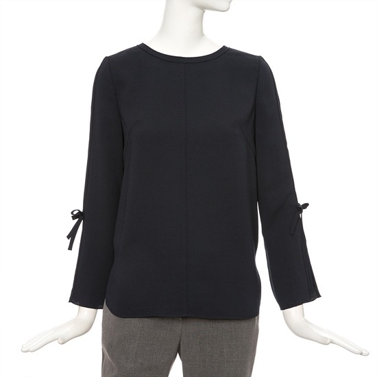 KL, 소매라인 따라 절개된 부분에 시스루로 여성스러우며 더 가늘어보이는 리본 블라우스입니다