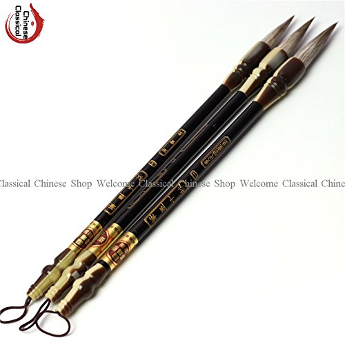 -. Title : Calligraphy Brush Sumi Pens Drawing Writing Painting Brush Big Script Solid Wood Rods Professional Brush First-rate Wolf Hair Sheep Hair Professional One Silk Bag (A Set of Three No Box)