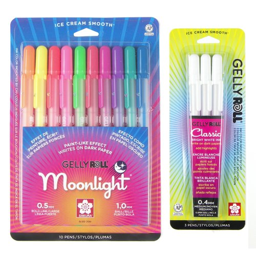 -. Title : Sakura Gelly Roll Moonlight 10 Color Pack Pen Set and a Gelly Roll Medium Point White 3 Pack Pen Set