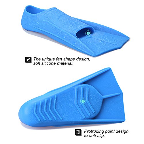 -. Binding : Misc. -. Brand : Elemart -. EAN : 0190149226628 -. Feature : High quality soft silicone that is durable and resists deterioration from sun and chlorine. / Short blade design helps you develop a stronger, faster kick. Improves technique while strengthening muscle development / Full closed foot pocket assists a secure and comfortable fit. Super easy to put on and take off, but it won't slip off. / Balanced flexibility delivers powerful propulsion with less power. / Stream-lined design with full-sized blade provides good performance. Size XS 3-5. -. IsAutographed : 0 -. IsMemorabilia : 0 -. Label : Elemart -. Manufacturer : Elemart -. ProductGroup : Sports -. ProductTypeName : SPORTING_GOODS -. Publisher : Elemart -. Studio : Elemart -. Title : Elemart Swim Training Fins - Short Blade Floating Fins Perfect for Snorkeling, Diving & Swimming -. UPC : 190149226628