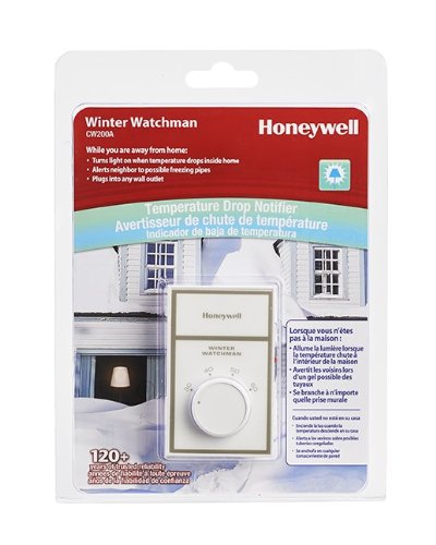 -. Binding : Tools & Home Improvement -. Brand : Honeywell -. Color : White -. EAN : 0085267870511 -. Feature : Offers a simple protective solution to prevent frozen pipes when you are away / Easy to install by simply pling the unit into a lamp near the front of your home. / The unit flashes the lamp light if the temperature dips below a preset level in your home so the pipes won't freeze and burst / Provides temperature range of 35-to-60-degrees Fahrenheit / Includes 1-year limited warranty / Maximum plug in wattage is 120 Watts -. Label : Honeywell -. Manufacturer : Honeywell -. Model : CW200A1032/E1 -. MPN : CW200A1032 -. NumberOfItems : 1 -. PackageQuantity : 1 -. PartNumber : CW200A1032 -. ProductGroup : Home Improvement -. ProductTypeName : HOME_LIGHTING_ACCESSORY -. Publisher : Honeywell -. Size : Large -. Studio : Honeywell -. Title : Honeywell CW200A Winter Watchman -. UPC : 085267870511 -. Warranty : 1 Year Product Warranty