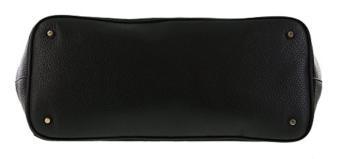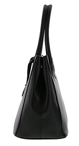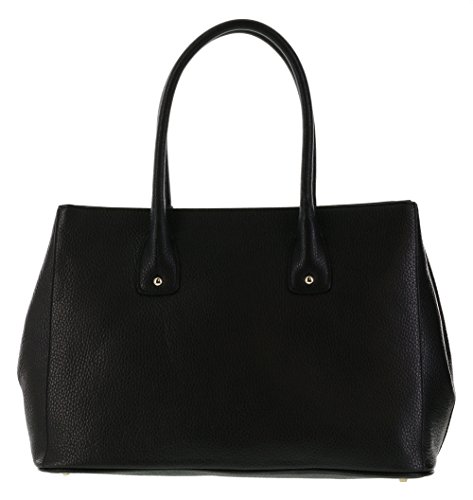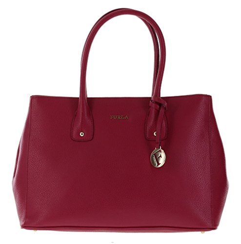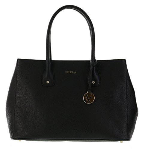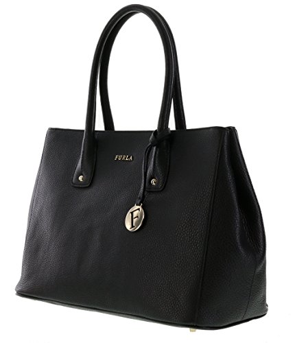 An essential tote bag, Furla pebbled leather, rolled top handles with hanging logo charm. Made in Italy. Style: Serena. Color: Onyx (Black).