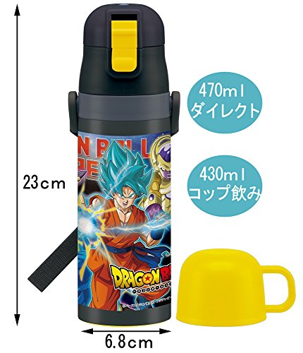 SKATER 초경량 2WAY 스테인레스 보틀 물통 컵 부착 470ml 보온 보냉 드래곤 볼 초 SKDC4