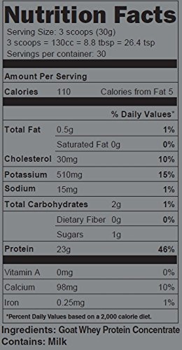 -. Binding : Health and Beauty -. Brand : NAKED nutrition -. EAN : 0702534568383 -. Feature : Only One Ingredient: 100% Pasture Fed Goat Whey Protein with no additives. Naked Goat contains no artificial sweeteners, flavors, or colors and is GMO Free, Growth Hormone Free, Soy Free and Gluten Free. / All Natural Goat Whey Protein: Our Pasture Fed Goat Whey is sourced from small dairy farms in Wisconsin to bring you non-denatured goat whey packed full of essential amino acids, clean protein and glutathione. / Maximum Nutrition: 23g of Protein, 1g of Sugar, 2g of Carbs, 110 Calories, and 4.6g of BCAAs (branched-chain amino acids) per serving. / Acid Free and Bleach Free: Unlike most whey protein powders, Naked Goat is manufactured using acid and bleach free processing; ensuring you a get high-quality, chemical-free protein. / Alternative to Cows' Milk Protein: Smaller fats in goat milk are easier to digest, making Naked Goat a great alternative to cow whey for milk-sensitive individuals or those allergic to lactose in cow's milk. -. IsAdultProduct : 0 -. Label : NAKED nutrition -. Manufacturer : NAKED nutrition -. ProductGroup : Health and Beauty -. ProductTypeName : HEALTH_PERSONAL_CARE -. Publisher : NAKED nutrition -. Studio : NAKED nutrition -. Title : NAKED GOAT - 100% Pasture Fed Goat Whey Protein Powder from Small-Herd Wisconsin Dairies, 2lb Bulk, GMO Free, Soy Free. Easy to Digest - All Natural - 23 Grams of Protein - 30 Servings -. UPC : 702534568383
