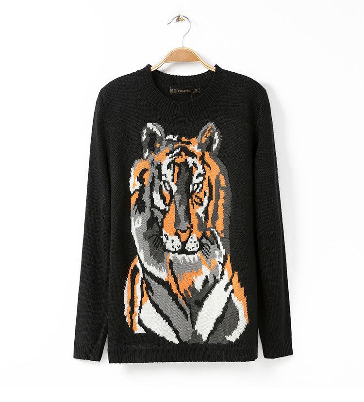 New Fashion Casual Women Sweaters and Pullovers Full Sleeve O Neck Tiger Print All-Matched Autumn Pullover Women Sweater