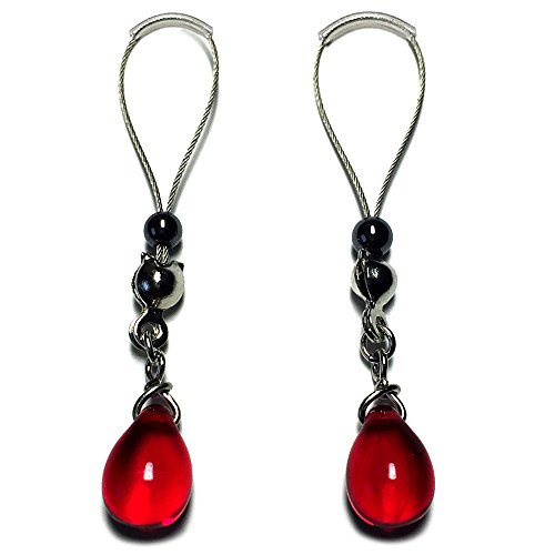 -. Title : [BoDivas] 乳首ヌース 日本製 ニップルリング 真紅の雫 レッド チェコガラス ヘマタイト アジャスター ピアスホール不要 ニップルジュエリー