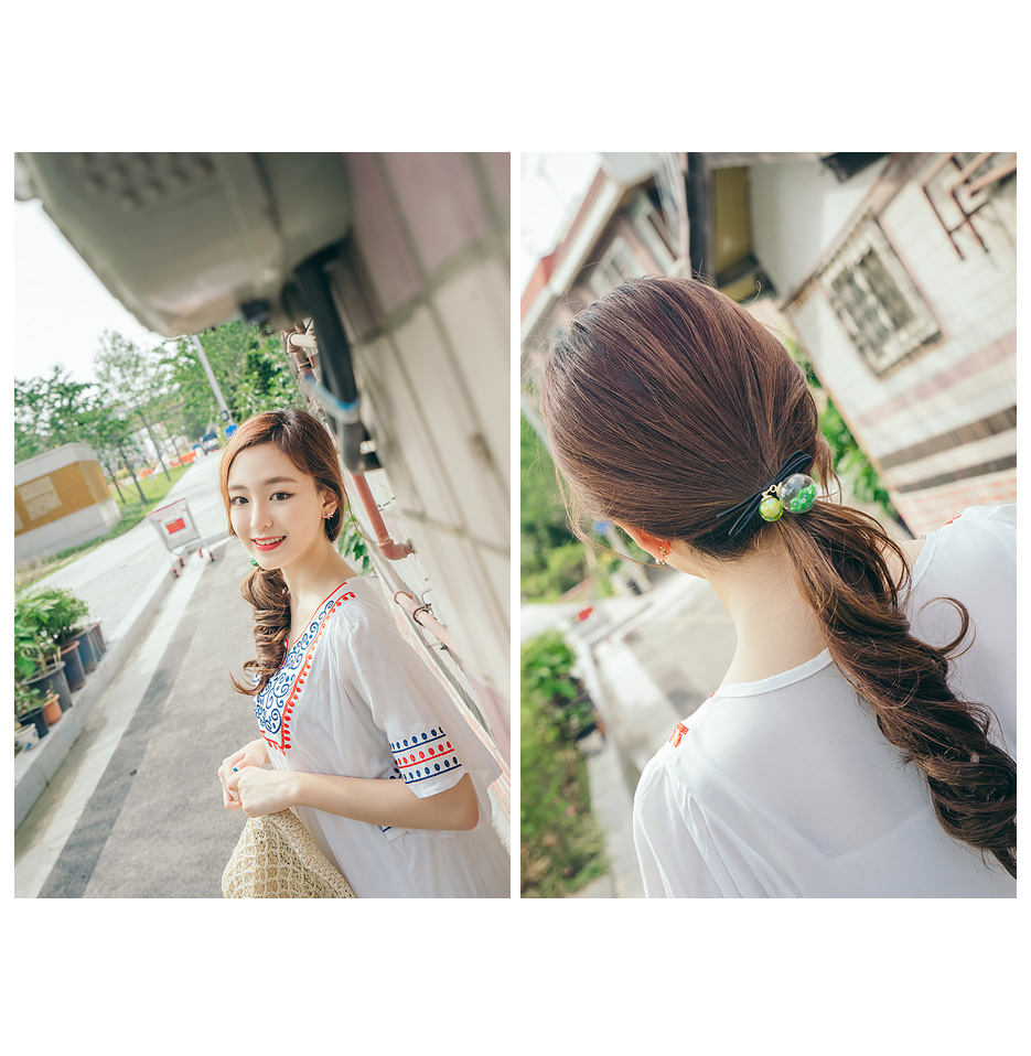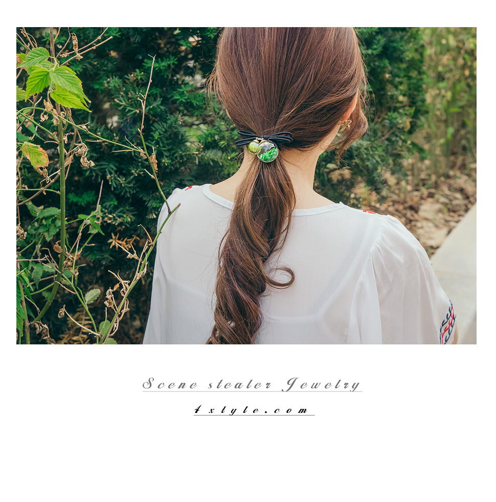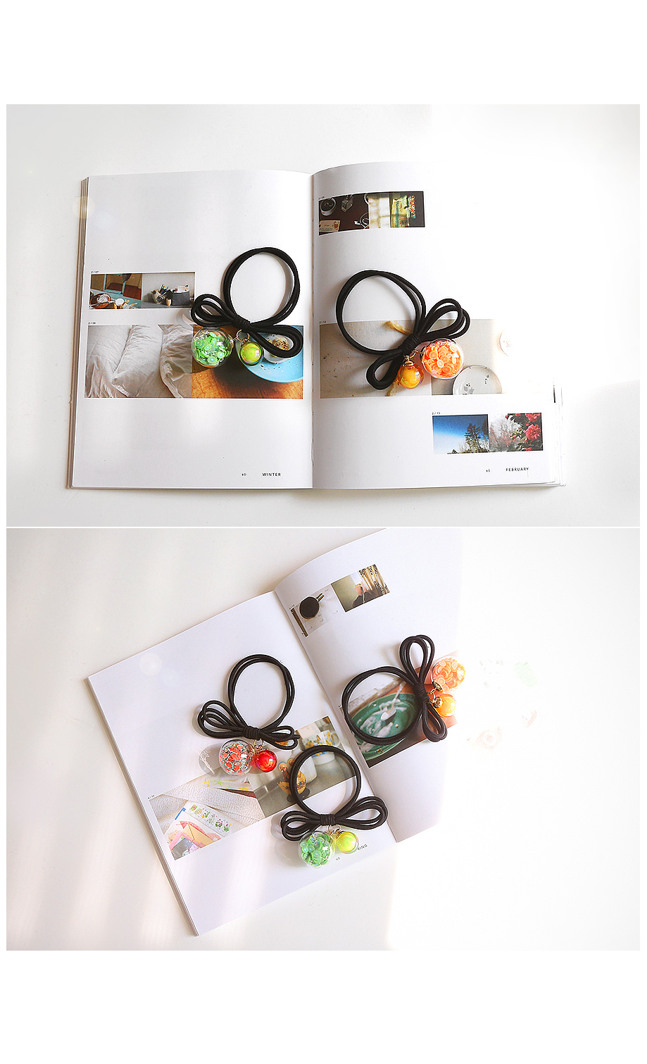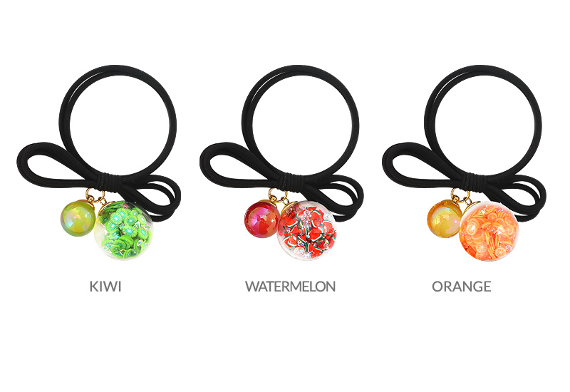 포니테일에도 반묶음에도 잘 어울릴 매력적인 제품! 투명한 볼안에 키위,수박,오렌지 장식과 크리스탈이 가득한 제품.