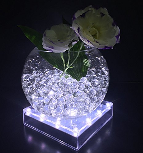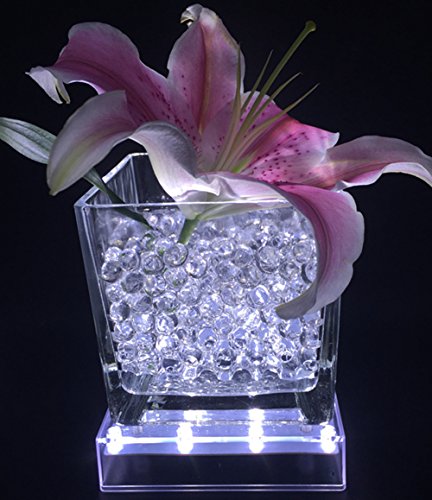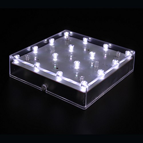 Acmee 5 inch Acrylic Square LED Vase Base Ligtht,Plate Light with 16 LEDs for Eiffel Tower Vase, Bright white Pedestal Light for Table Centerpiece Decoration,LED base (White Light)